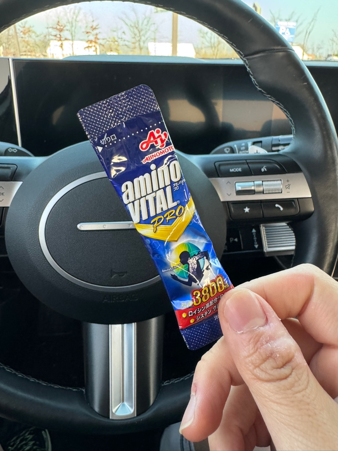 도착하자마자 차에서 컨디션 조절용으로 아미노바이탈 프로 먼저 한 포.