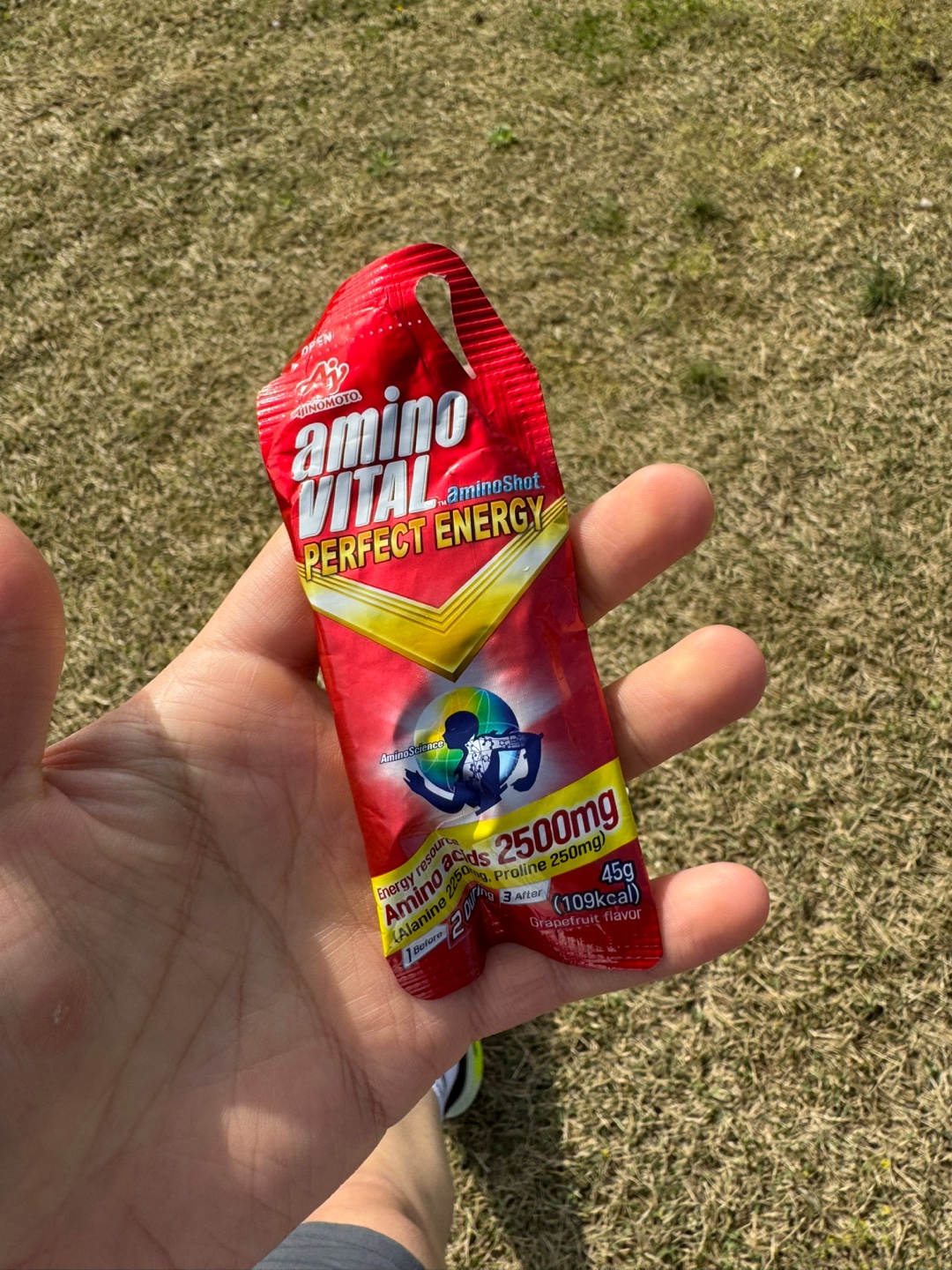 경기 시작 30분 전엔 아미노샷 에너지젤도 하나 챙겨 먹었어요.