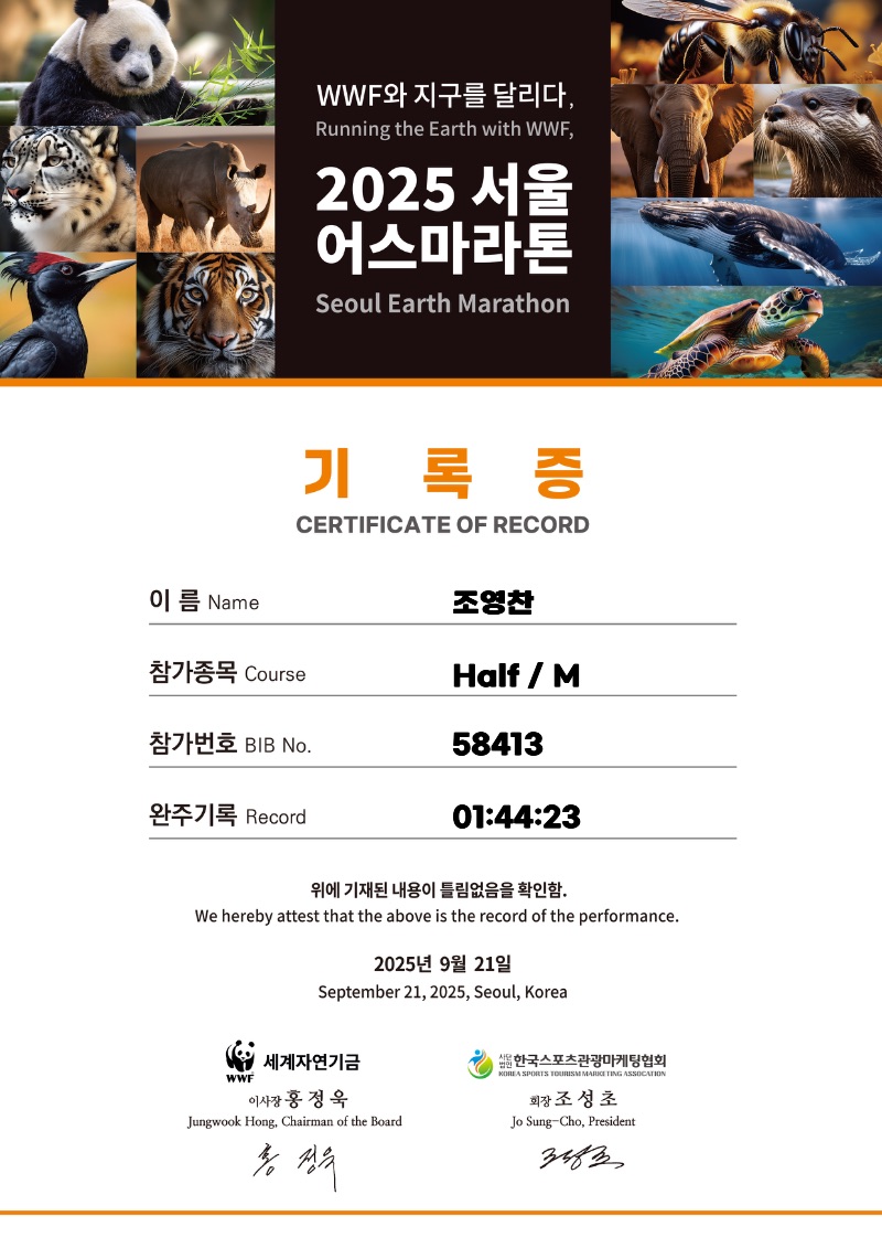 2025년 9월 21일 서울에서 열린 WWF 서울 어스마라톤 Half 코스에 참가했습니다.