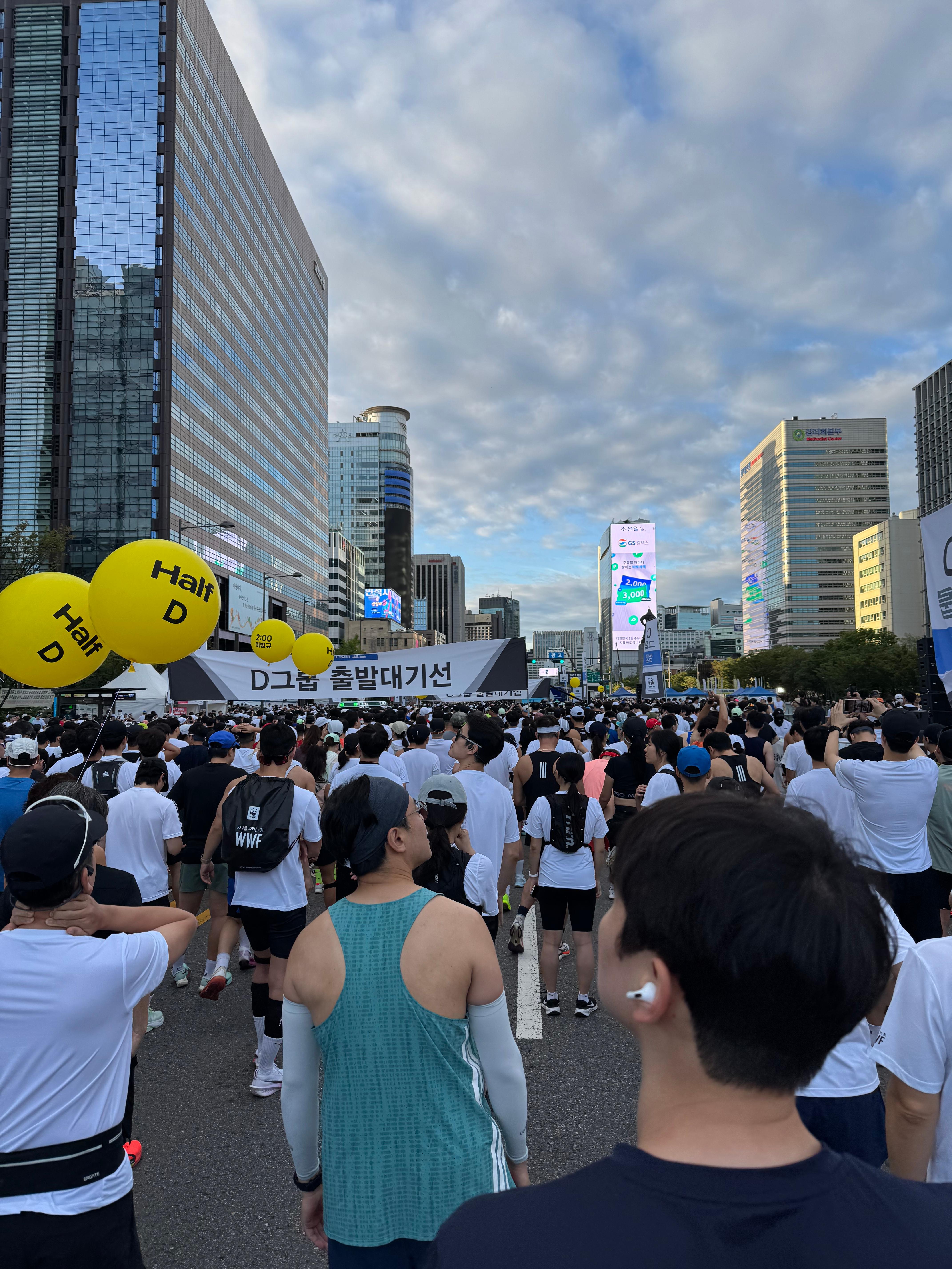 하프 D조 출발선 앞에 서니 심장이 요동쳤어요.