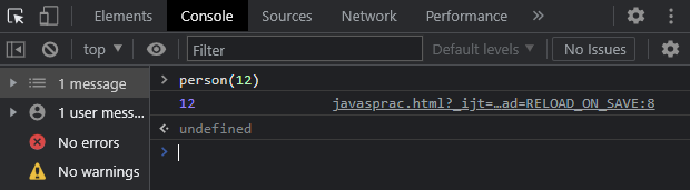console창에 변수(12)를 넣어 person(age)함수를 호출해보면,