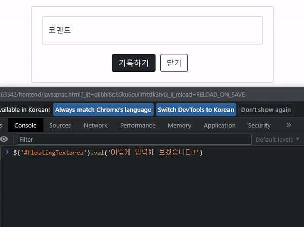 $('#floatingTextarea').val('이렇게 입력해 보겠습니다!')