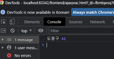 2) Ajax 통신의 결과값 이용하기