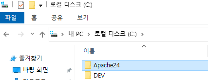 2. 압축을 푼 후 폴더 안에 있는 apache24 폴더를 c드라이브로 옮겨줍니다.