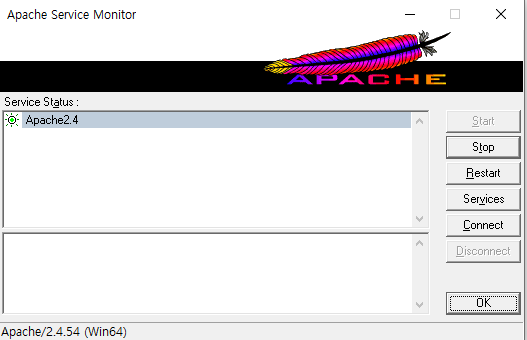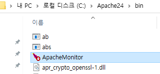 1) C:\Apache24\bin에서 ApacheMonitor를 실행합니다