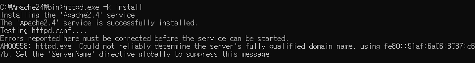 2) C:\Apache24\bin 에서 httpd.exe -k install 를 해줍니다!
