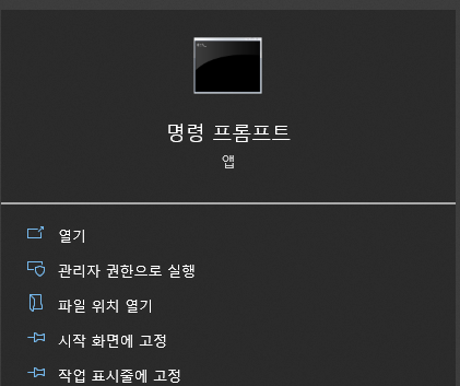 1) 관리자모드로 명령프롬프트를 열어줍니다.