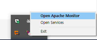 2) ApacheMonitor에서 서버를 start/stop을 할 수 있습니다.