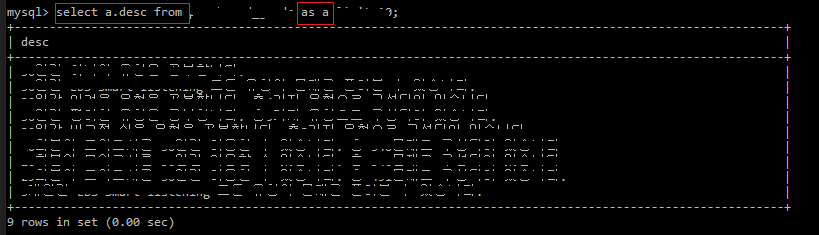 | [SQL] 테이블의 구조와 설명을 알 수 있는 desc!! (0) | 2023.01.11 |